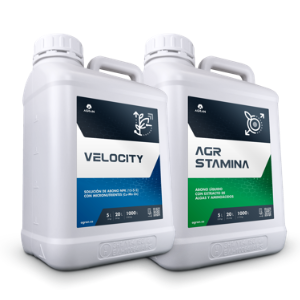 Ambos productos actúan sinérgicamente para potenciar la brotación, estimular el crecimiento inicial y mejorar la respuesta del cultivo frente a condiciones adversas.