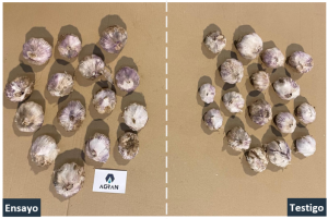 - Ajo violeta: aumento productivo de 1127 kg/ha.
