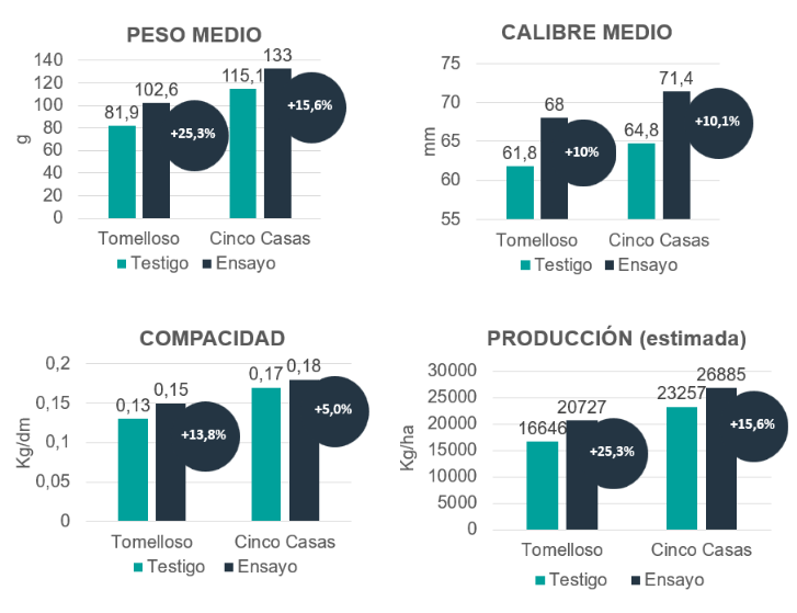 - Tomelloso: Aumento productivo de 4181,8 kg/ha.