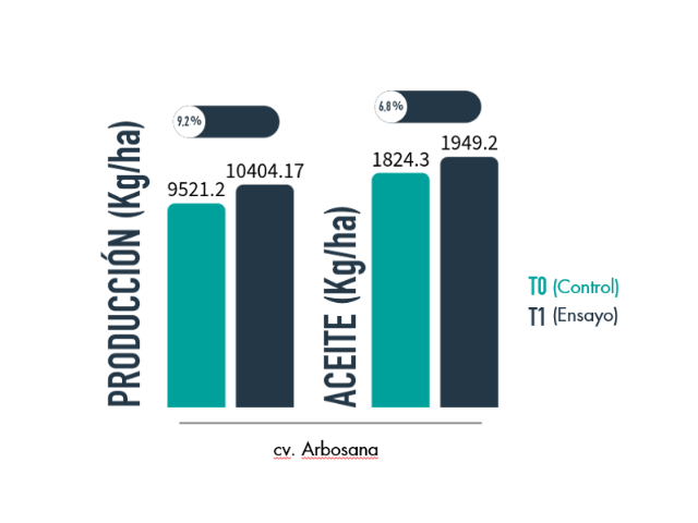 - Se observa un incremento de producción de aceite (kg/ha) del 6,8% en la parcela ensayo respecto a la parcela control.